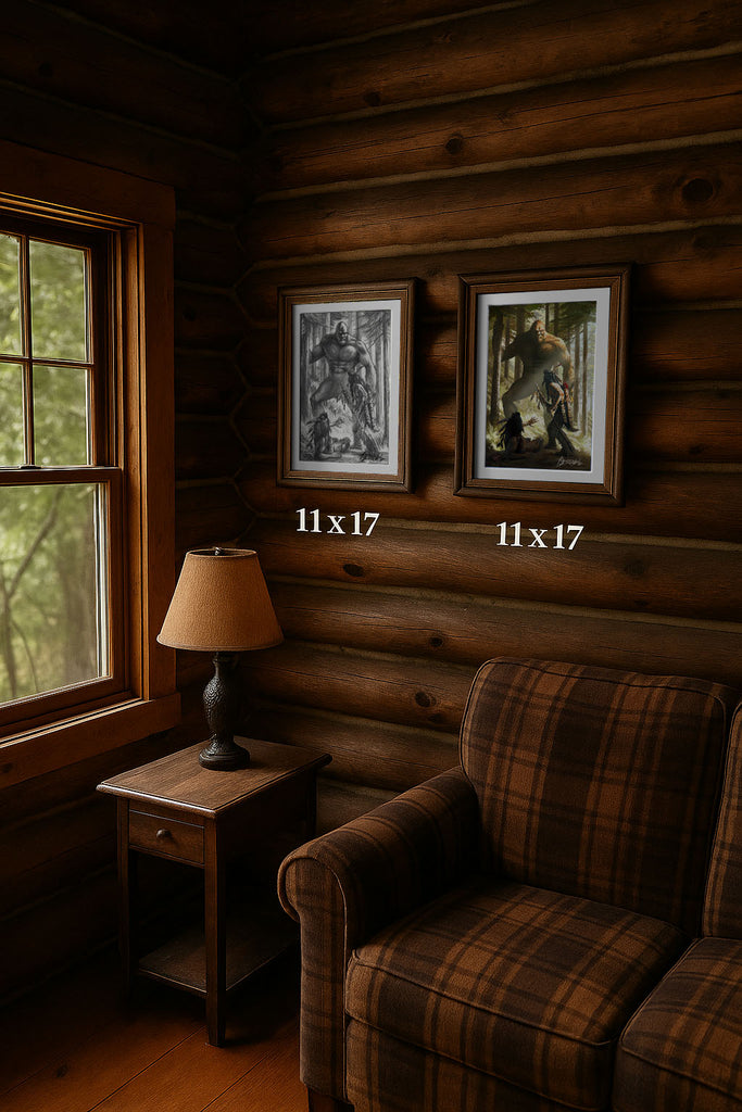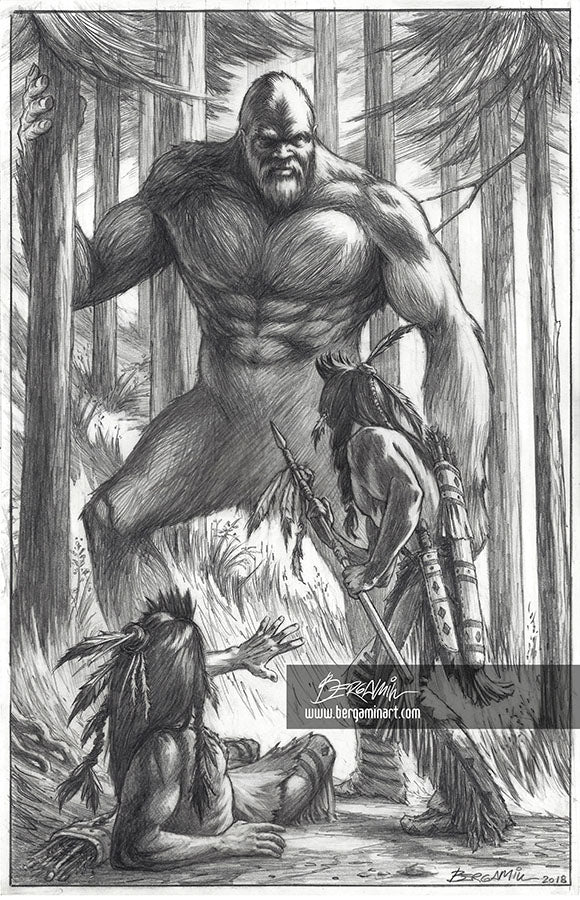 Sasquatch Vs Crow hunters. Pencil Sketch