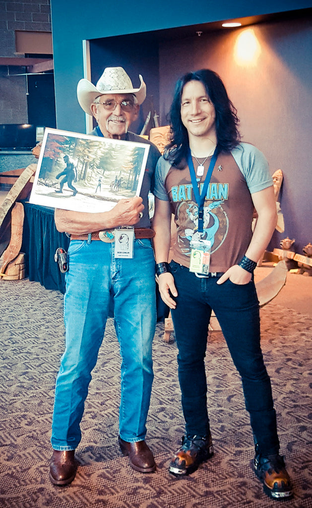 This 12"x17" high-quality print, numbered for authenticity, features original artwork by Claudio Bergamin. It is signed by both Claudio Bergamin and Bob Gimlin, commemorating the 50th anniversary of the Patterson-Gimlin Film.